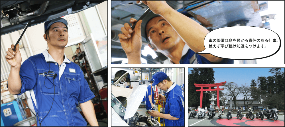 ますます高度化する車を整備していくためには、たえず学び続けなくてはいけません。それは決して楽な道ではありません。しかし、これまでも目の前のことに対してベストを尽くし、そのたびに壁を乗り越えてきました。技術の進歩にしっかりとついていき、オールマイティーなメカニックを目指していきたいと思います。また、今の私は後輩の育成も大切な仕事です。答えを教えるのではなく、気づきを与えて成長を促す指導を心がけています。