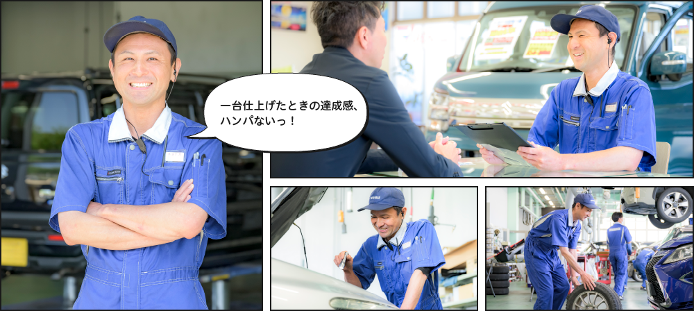 前職時代との比較でいえば、整備に専念できる環境になっていることも大きな違いです。前職時代は、お客様に直接説明する機会が多かったのですが、トヨナガではサービスフロントがその役割を担ってくれるので、まさにザ・メカニックです。その中で、大切にしているのはお客様をお待たせしないこと。時間がかかりそうな作業のときには、周りの仲間がサポートしてくれるチームワークの良さもあるので、整備でも用品の取り付けでも1台仕上げるごとに確かな達成感を味わっています。