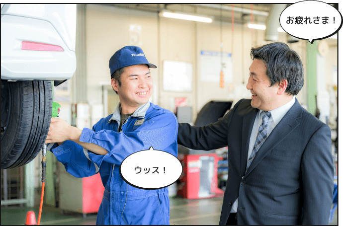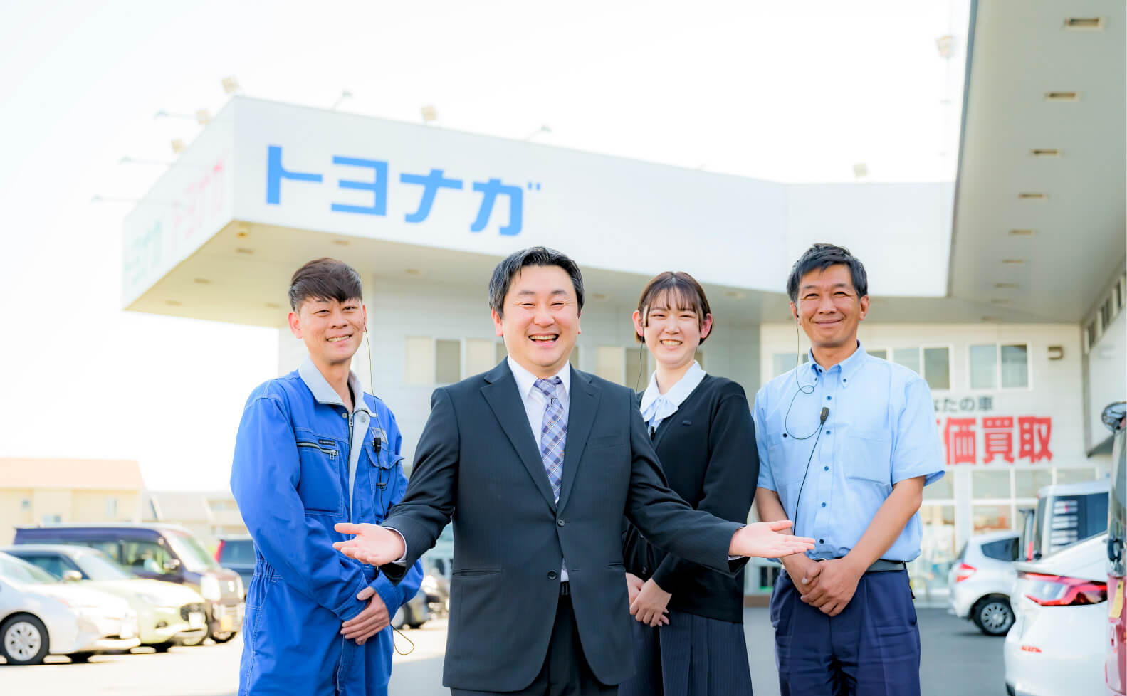 キャリア採用なので当然、即戦力として期待しています。でも、業界のことやクルマの知識まで求めているわけでありません。前職がどういった業界、どのような職種の方であっても、そこで培った経験やスキルを発揮できるのがトヨナガです。カーライフアドバイザー、サービスフロント、メカニックの3つの職種に共通しているのは、“チームトヨナガ”の一員としてお客様のカーライフを幸せにすることに熱意を持って取り組めるかどうか。当社の理念を共有できる方であれば、ウエルカムです。