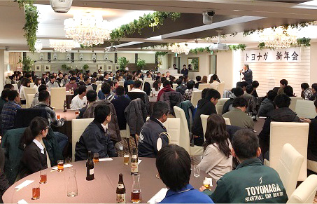 トヨナガでは、全社員が集まる「決起集会」「新年会」を開催しています。普段、なかなか会えない他店舗の社員と交流を深め、楽しい時間を過ごすことができます。また、その場では、がんばった社員をたたえる様々な賞も用意しています。