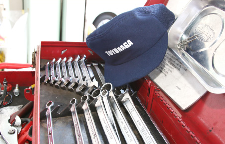 一般的に、メカニックは工具を自分で購入することが多いです。しかし、それらは非常に高価で、ひととおり揃えるには大きな金銭的負担がかかります。トヨナガでは、仕事で使用する道具類は、会社からしっかり支給しますのでご安心ください。